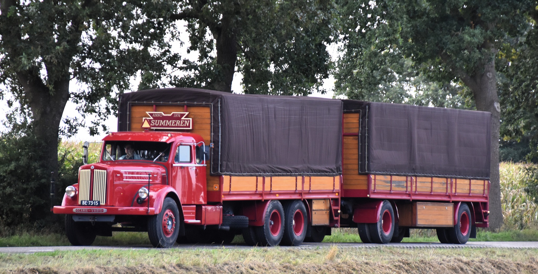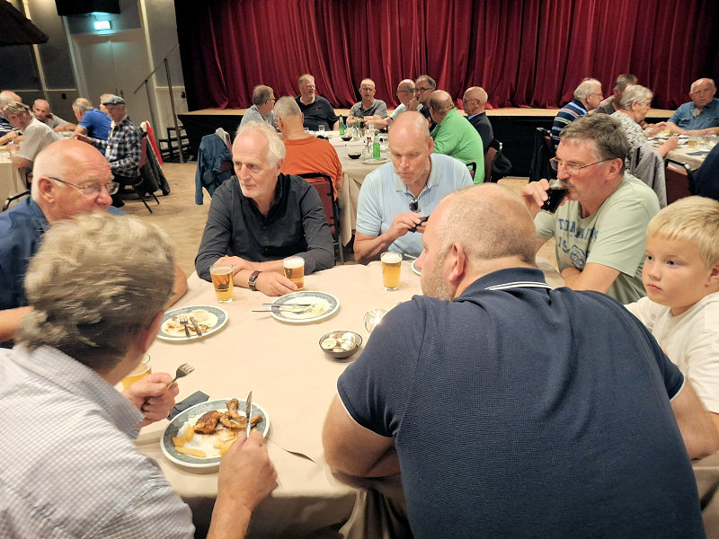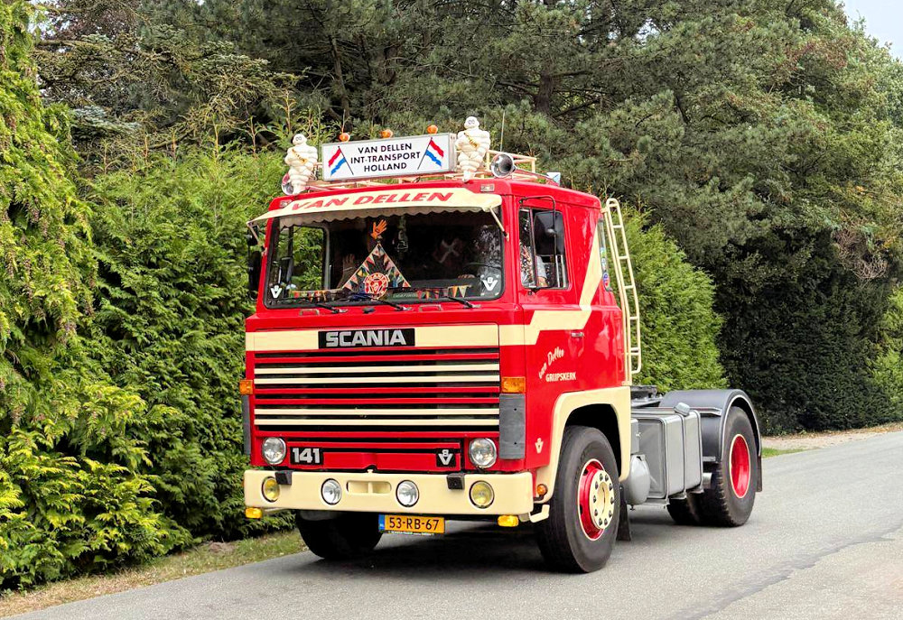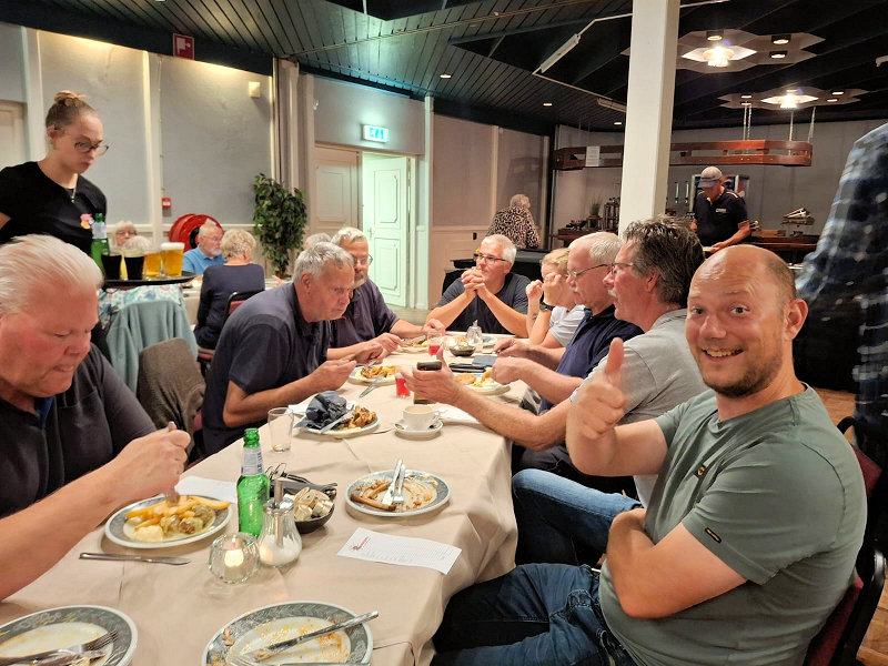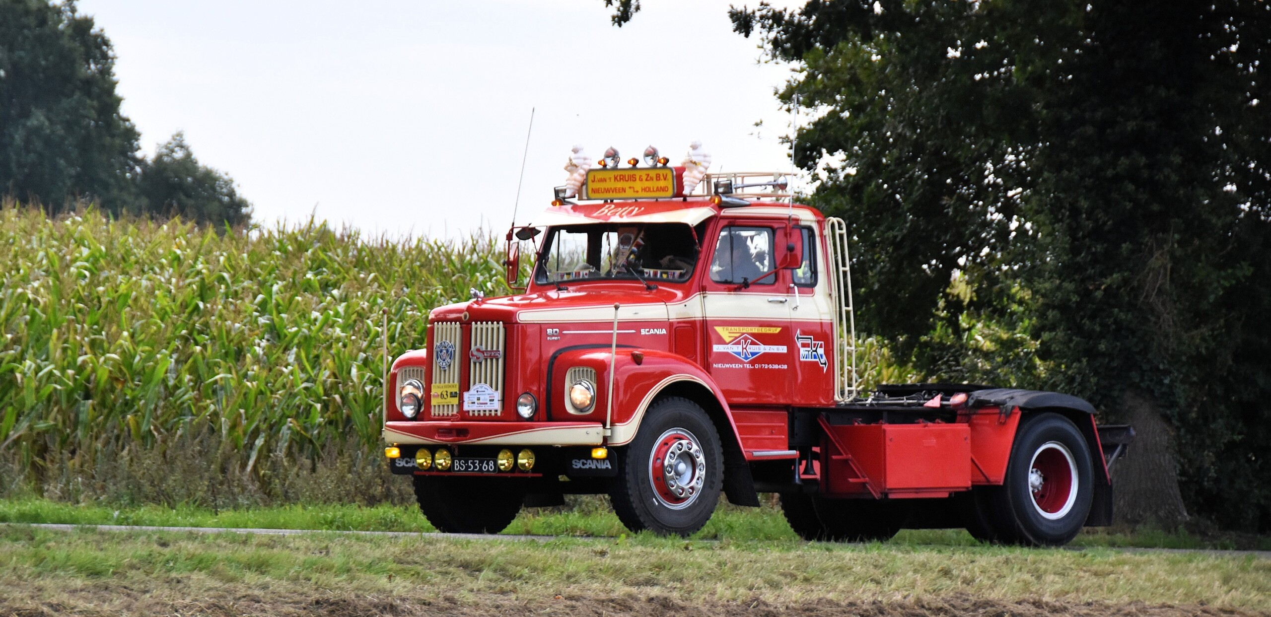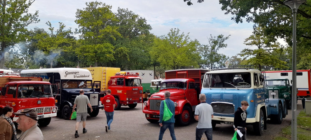 Zaterdag 20-09-2025 was onze herfst rondrit, deze keer uitgezet door Jan Haaijer, Jan Kalk en John Moesker. De samenkomst was bij restaurant Rendering in Vlagtwedde en dat was best een eind rijden vonden wij, oh ja wij, dat zijn Henk Dijk eigenaar van ons vervoermiddel, een Scania die ons comfortabel over ‘s Herenwegen bracht, L ouwe van der Velde was de chauffeur van dienst en Joris Smits die probeert een beetje een verslag te maken van de rit. Wij vonden het dus al een best eind rijden maar ja de mannen en vrouwen die uit west Friesland en zuid Drente kwamen moesten nog veel verder en dus langer rijden. En dan vergeet ik haast nog de mannen en vrouwen uit Brabant en de Betuwe. Er waren vrijdagavond al een aantal oldtimers in Bourtange en ook in Vlagtwedde met hun oldtimers geparkeerd. We geloofden onze ogen niet, zoveel deelnemers waren er. 77 oldtimers die uit alle hoeken van Nederland kwamen.