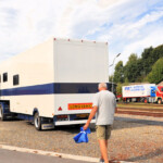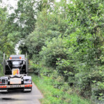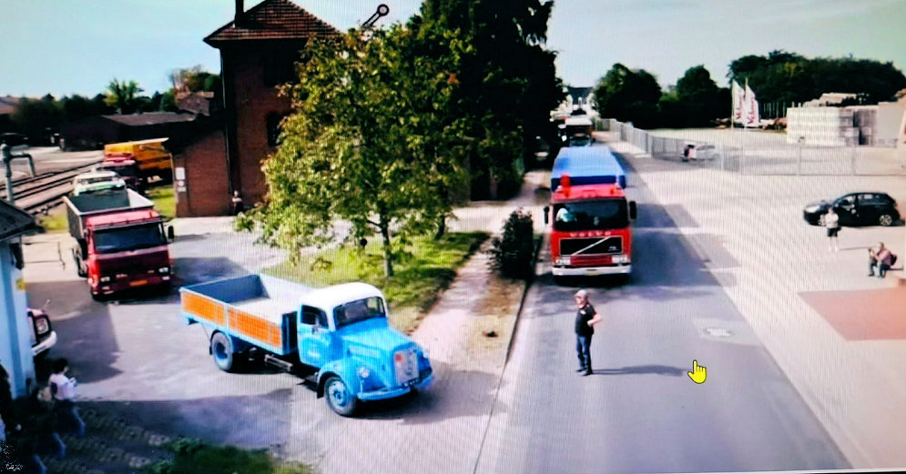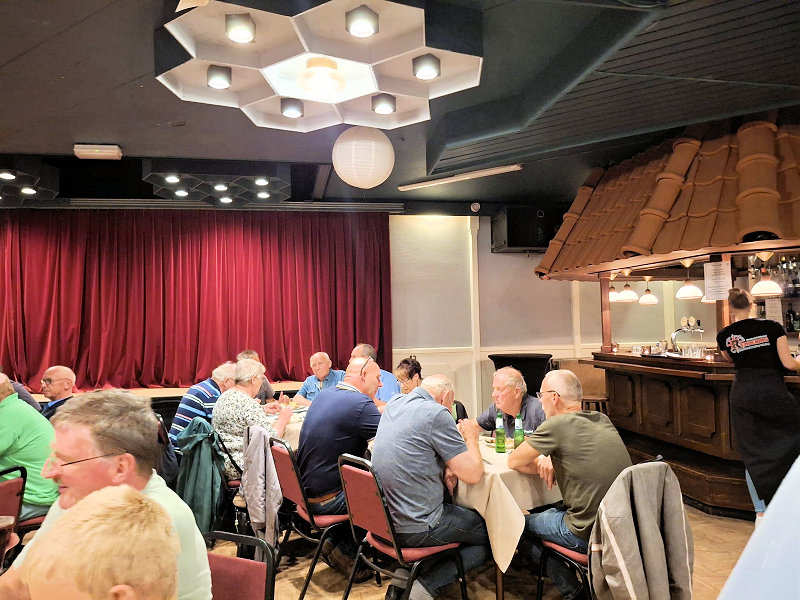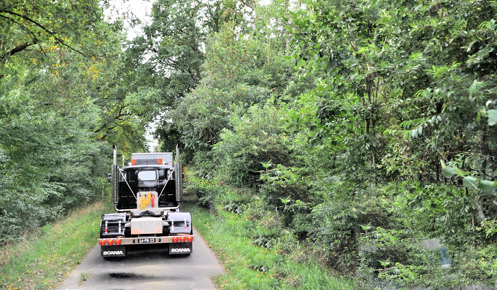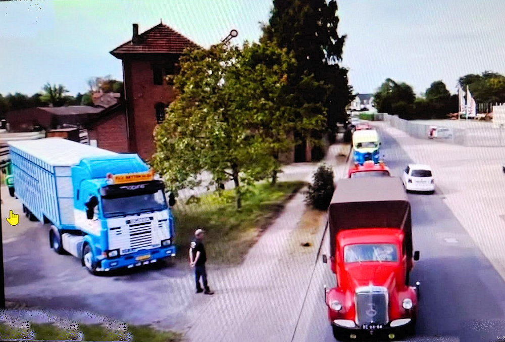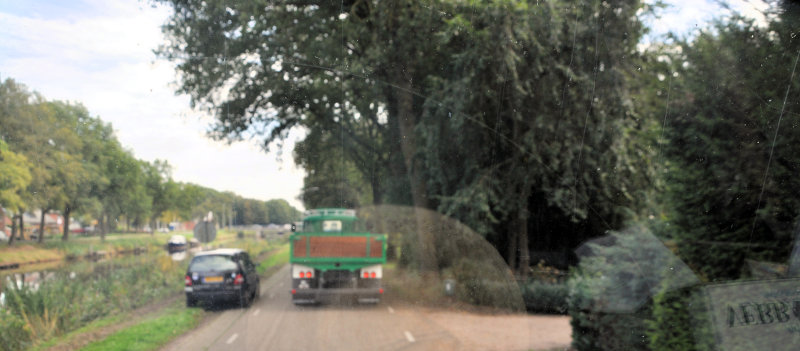 De rit voerde ons eerst door Oost Groninger , wat een mooie natuur gebieden hebben we toch best wel in Groningen. Daarna gingen we de grens over naar Duitsland en wat mij daar opviel was dat de het publiek daar enthousiast was en zwaaide als we passeerden. De rit ging via Sögel naar Haselünne waar we parkeerden bij het spoorwegemplacement van de Eisenbahnfreunde Hasetal Haselünne. Een hele mond vol Duits. Ook daar hadden de heren van de planning weer hun beste beentje voor gezet betreffende de route die ons o.a. langs Aschendorf en tal van andere plaatsjes voerde. Bij Haselune werd zoals gezegd een stop gemaakt bij een spoorweg museum. Ik heb dat alleen van de buitenkant bekeken want daar moest je weer en eindje voor lopen en dat is mijn hobby niet meer, bovendien was het tijd voor koffie, broodjes en allerlei lekkers. De oplegger van Jan Haaijer herbergde al die leuke en lekkere dingen en iedereen maakte daar gretig gebruik van. Even dacht ik dat de Russen ook interesse hadden want er vloog een tijdlang een drone boven onze hoofden maar later hoorde ik dat de piloot een bevriende fotograaf was.