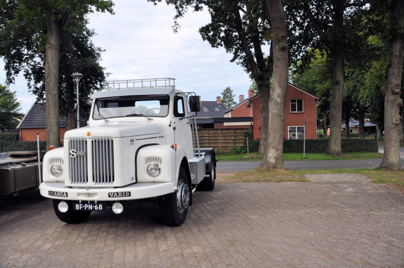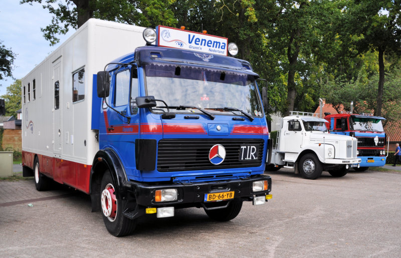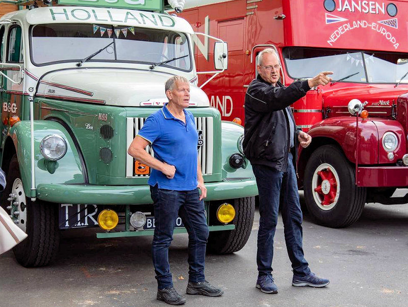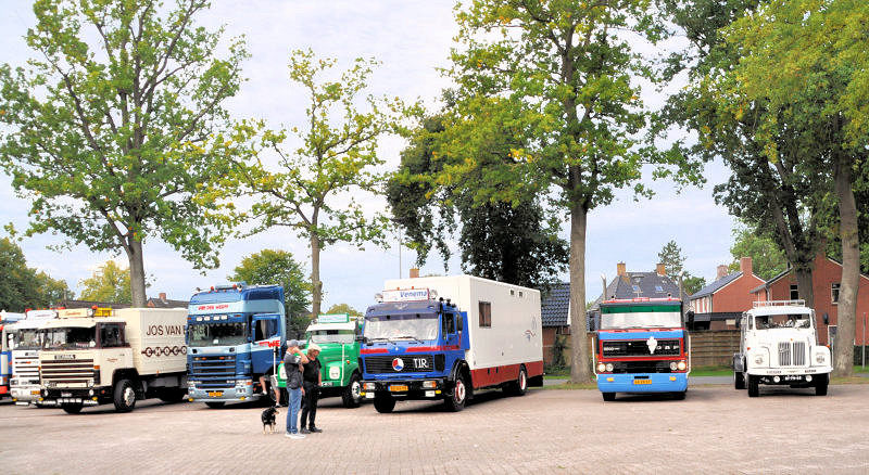 Ik kreeg van Anna, de vriendin van onze cowboy uit de polder nog een rondleiding in hun nieuwe oplegger. Ik vond de inrichting zo mooi dat ik van schrik geen foto’s heb gemaakt maar dat ga ik nog goed maken. Joop Zuidema was er gelukkig ook weer, na zijn ziekbed is hij aardig smaller geworden maar dat heeft volgens Joop ook voordelen want kleding dat al jaren in de kast lag paste nu weer perfect. Bovendien liet Joop zich rijden want de altijd aardige en vrolijke Freddy Hoeksema wilde Joop graag als bijrijder mee nemen. Nog even met Brands uit Rolde gesproken, Brands heeft zijn kleinzoon tot chauffeur gepromoveerd, toch mooi dat het zo ook kan, misschien ook wel wat voor Karst Eitens, die heeft ook een leuke kleinzoon.