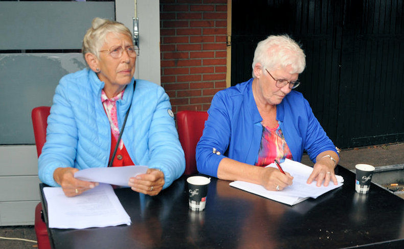 Het moet het bestuur toch goed doen om te zien dat we zelfs in het toch niet naast de deur liggende Noord Brabant leden hebben, het is al eens eerder gezegd, de club gaat nog eens aan zijn eigen succes ten onder. Want je moet al die oldtimers wel een plaatsje geven tijdens een rondrit. De grote parkeerplaats in Vlagtwedde was bomvol en naast olpdtimers zag ik ook Young timers. We kregen daar in Vlagtwedde allemaal een naar believen gele of rode plastic zak met de nodige voedingsmiddelen, versnaperingen, fruit en drinken en niet te vergeten voor onze gevederde vrienden ook nog een mezen bolletje lekkers mee, mede sponsor van al dat lekkers was Feest Voor Vogels. Daarna kwam je bij de vriendelijke goedlachse dames De Vries en Westra voor de inschrijving van de tocht.