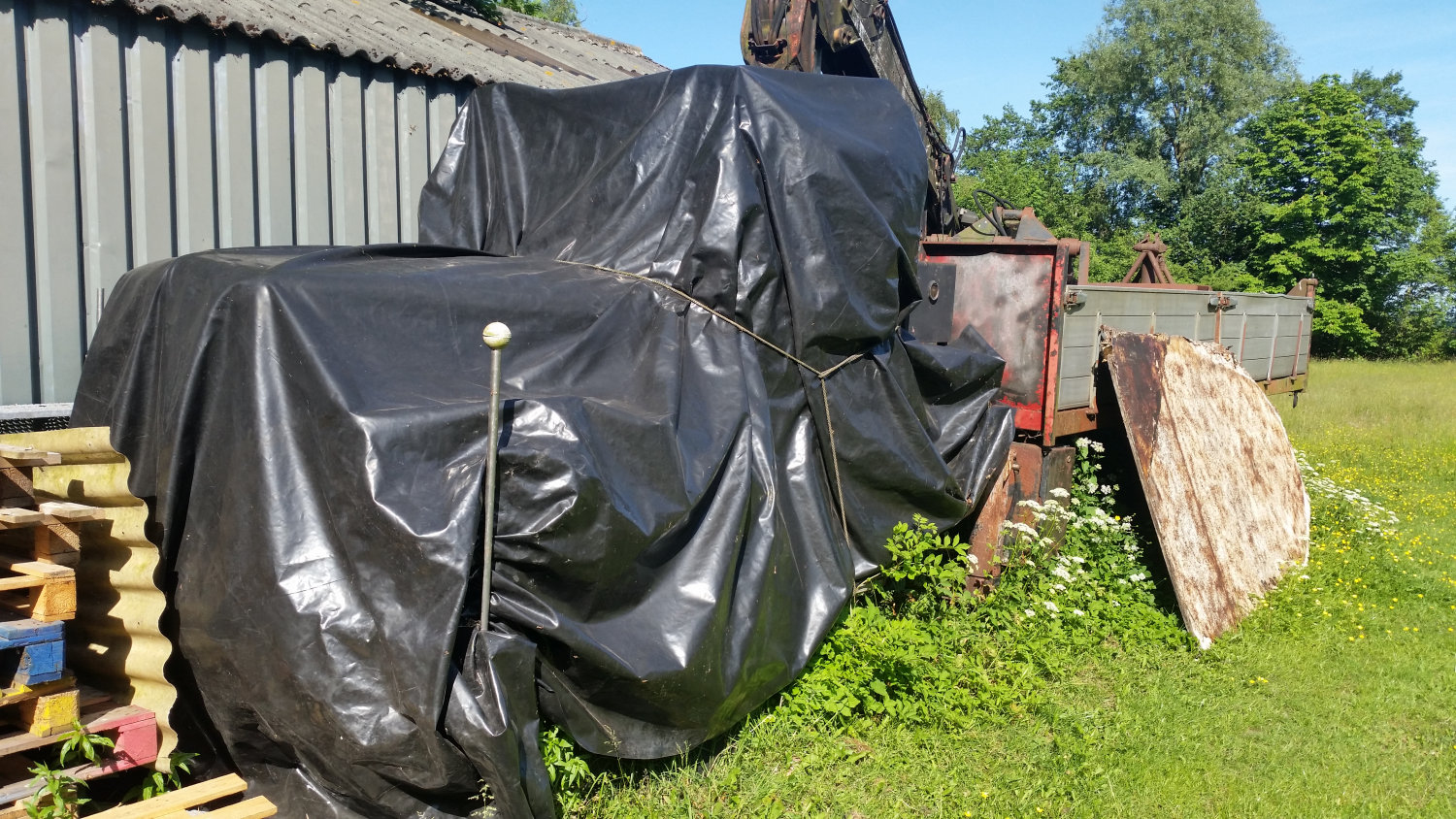 Bijzonderheden: De Scania staat verpakt te wachten op restauratie